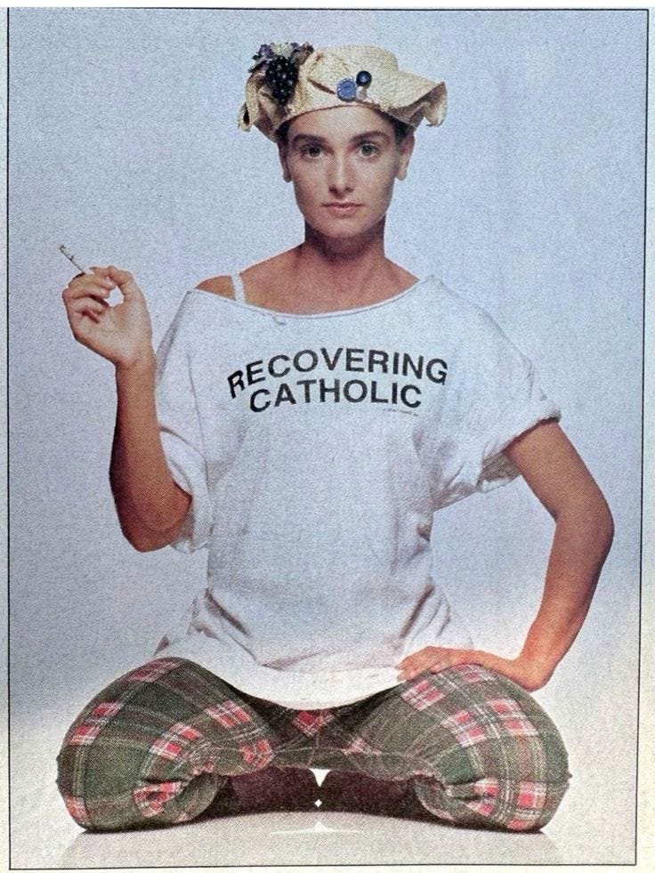None of those assessments sounds quite right but neither does “lapsed Catholic” or “raised Catholic”. Maybe Irish Catholicism? If I had to define my relationship to Catholicism, it would probably be through some wild and pathetic gesticulation at this picture of Sinead O’Connor.